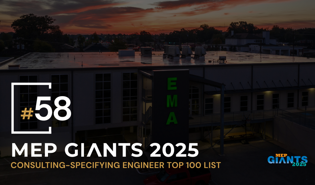 EMA Named to MEP Giants 2025We are beyond grateful and ecstatic to announce that EMA has been named one of Consulting-Specifying Engineer’s Top 100 MEP & Fire Protection Engineering Firms... Read More